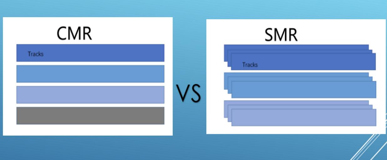 Bežné jednotky magnetického záznamu (CMR) zapisujú dáta na pevný disk v neprekrývajúcich sa stopách. Shingled Magnetic Recording (SMR) umožňuje prekrývanie stôp, výsledkom čoho je vyššia hustota dát, ale pomalšie časy čítania a zápisu v porovnaní s jednotkami CMR.