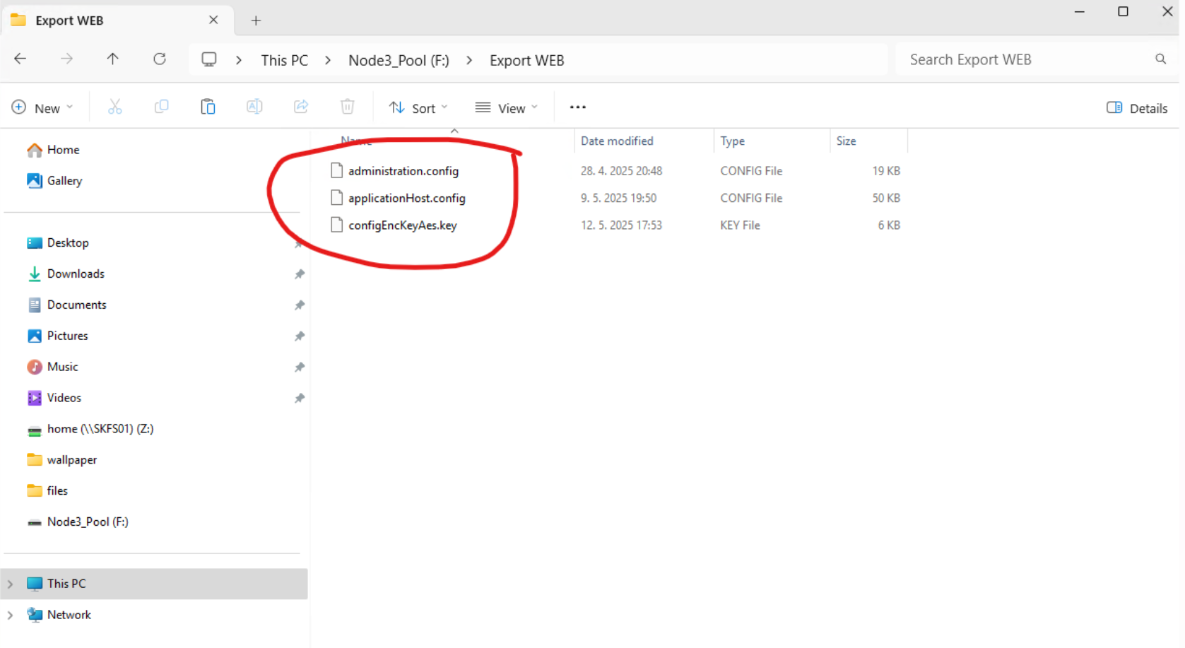 4. Skontrolujte konfiguračný priečinok exportu, mali by byť pre vás vytvorené tri súbory: